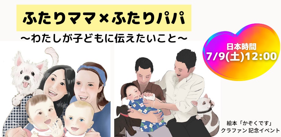 絵本にも登場する「ふたりパパ家族」のカズさんと、「ふたりママ家族」のまどぅー(著者)をゲストにトークイベントを開催します!