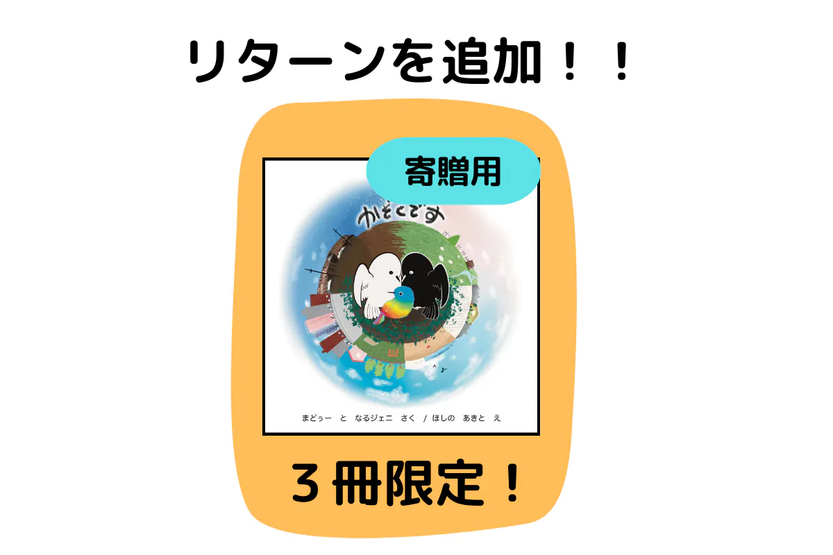 <3組追加!>【絵本1冊&寄贈1冊&お礼メール&ホームページ名前記載】