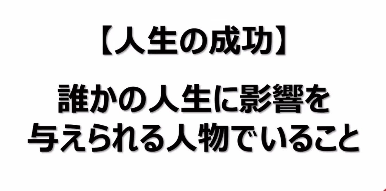人生の成功とは、『誰かの人生に影響を与えられる人物でいること』