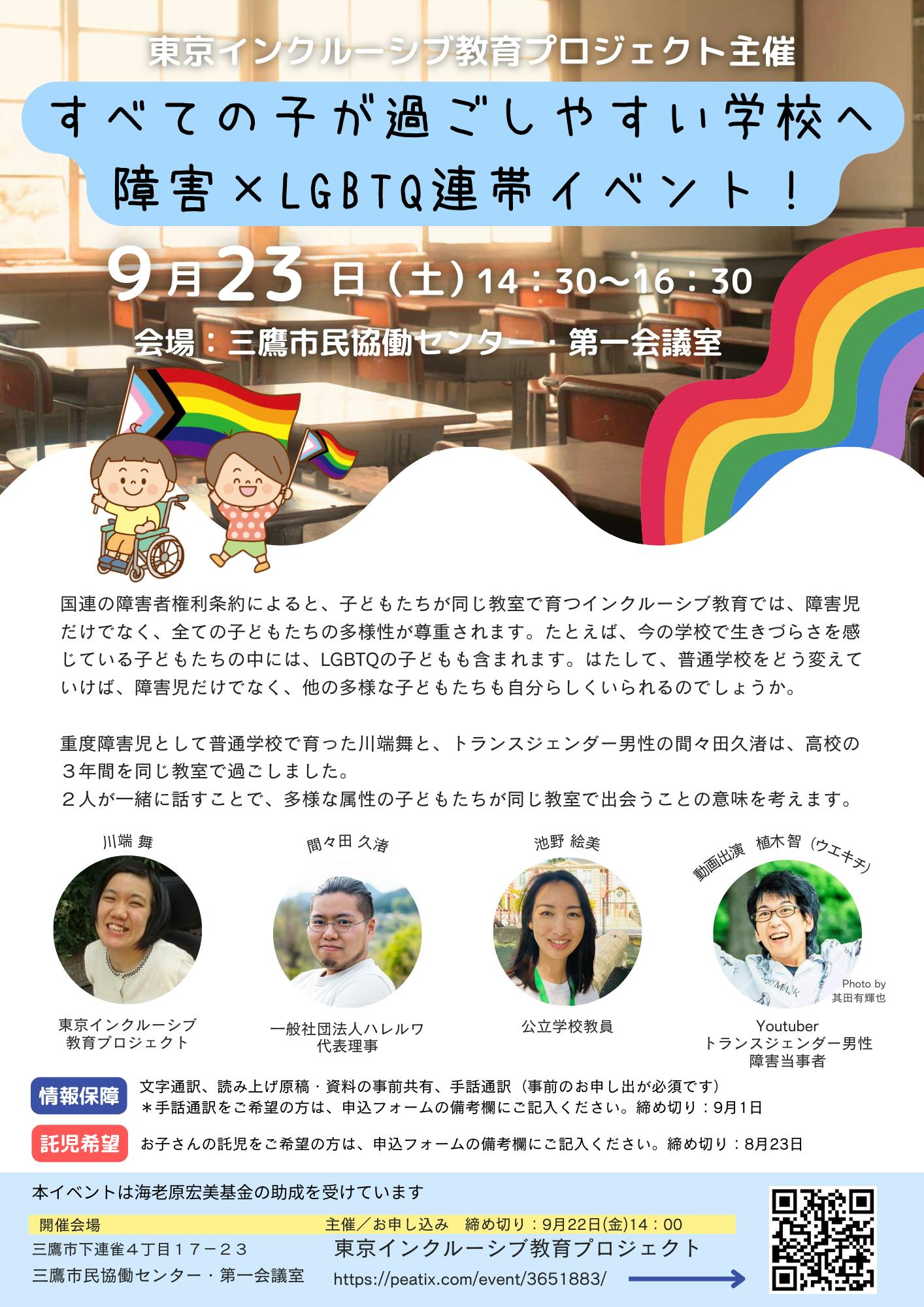 すべての子が過ごしやすい学校へ 障害×LGBTQ連帯イベント!