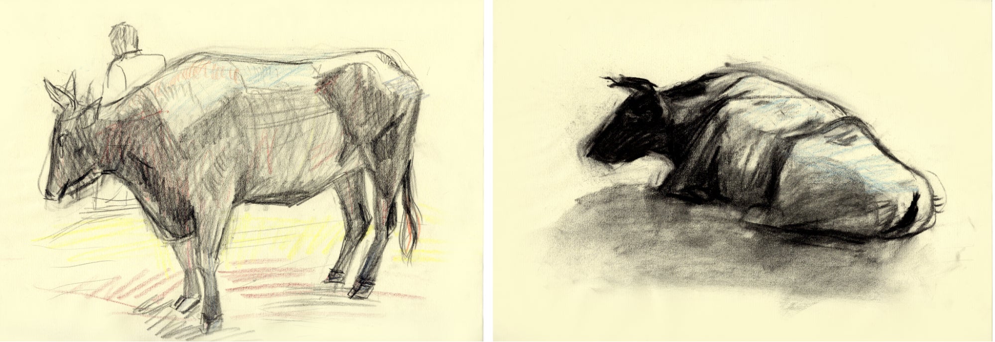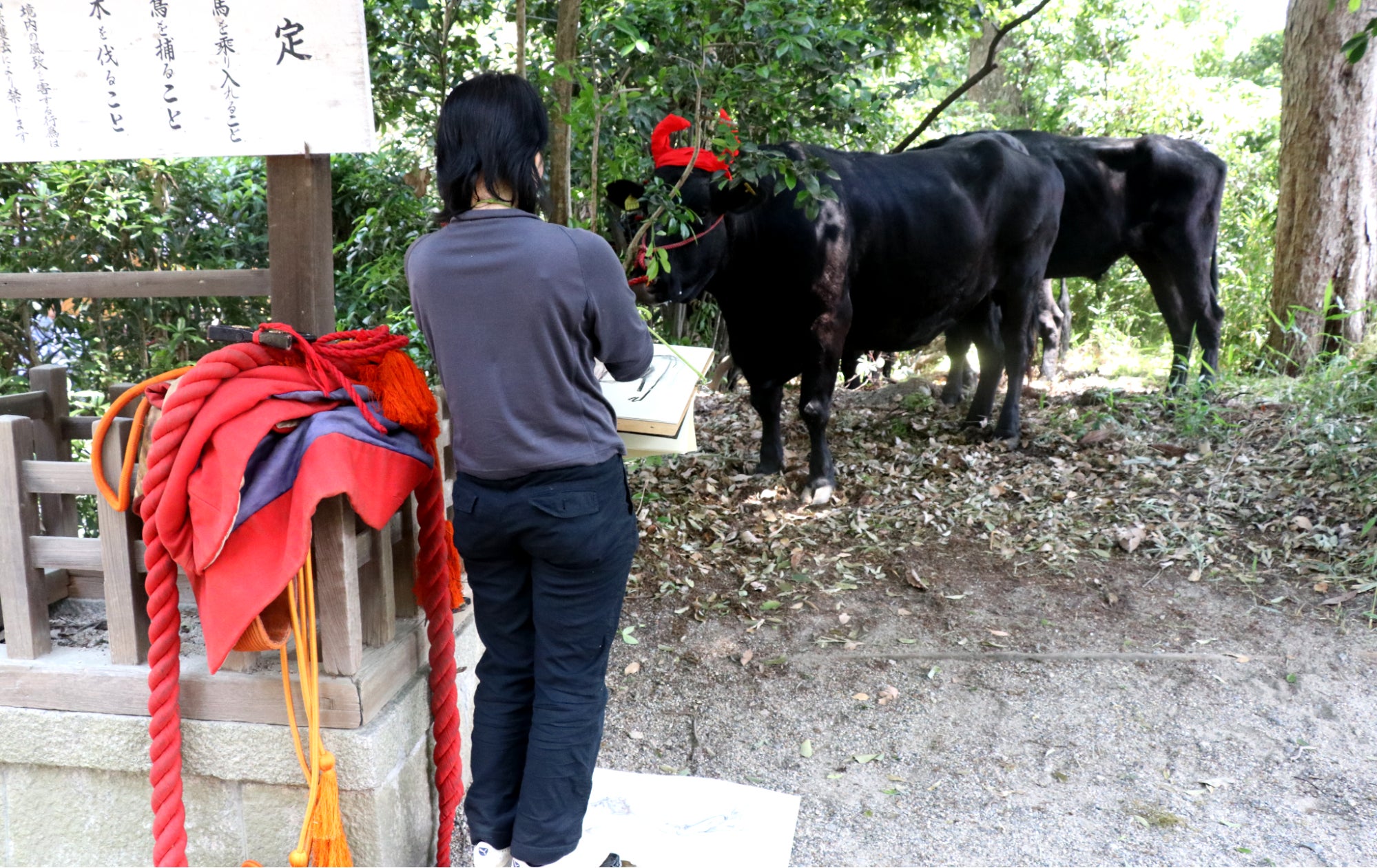 農家さんにとって田んぼを耕す牛は家族も同然。だから絶対絵図には必要。今でも牛をスケッチできるのは葵祭の道中でした。