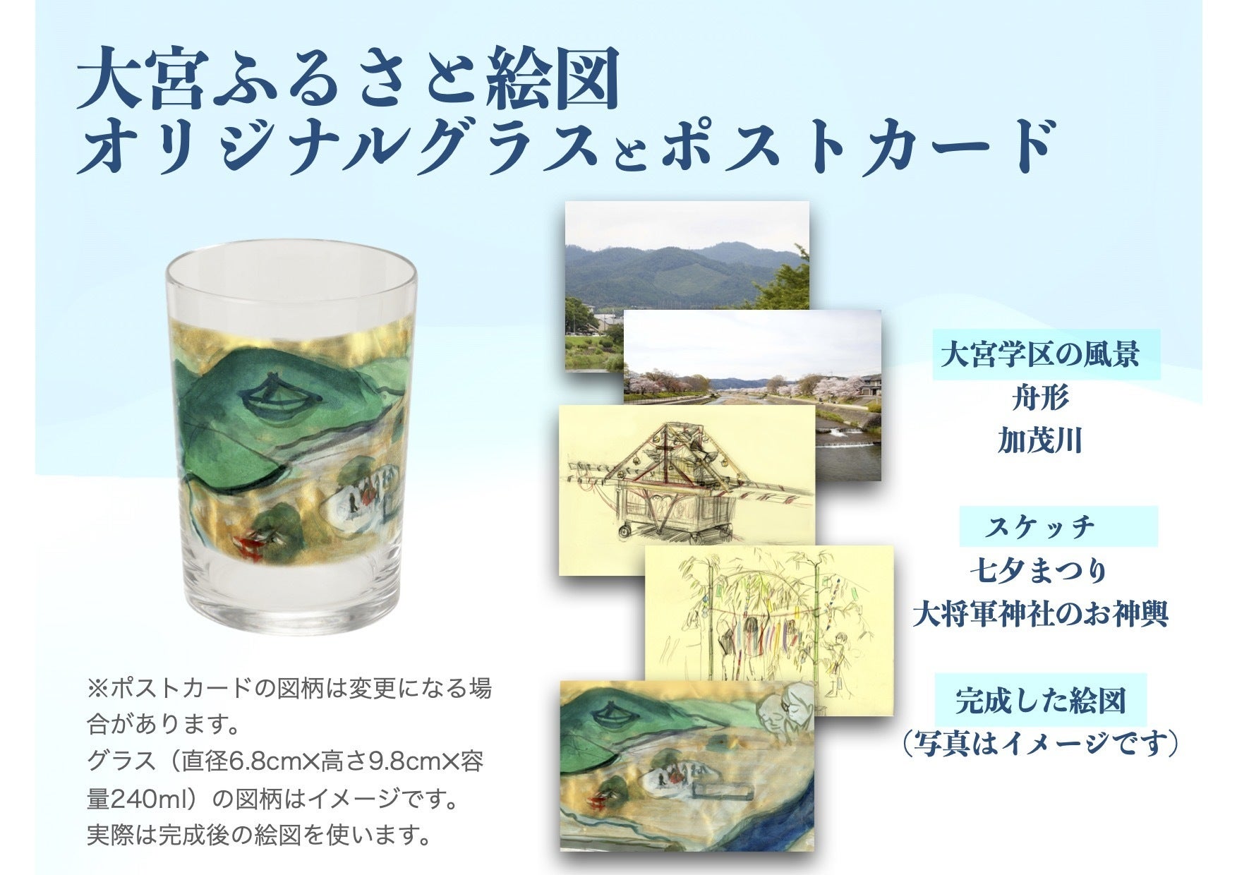 支援額20,000円 大宮ふるさと絵図オリジナルグラスとポストカード(5枚セット)のセット(限定10個)