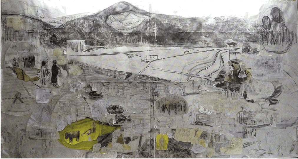 これが現在の絵図の下絵です。今までたくさんの取材をしてやっとここまできました。