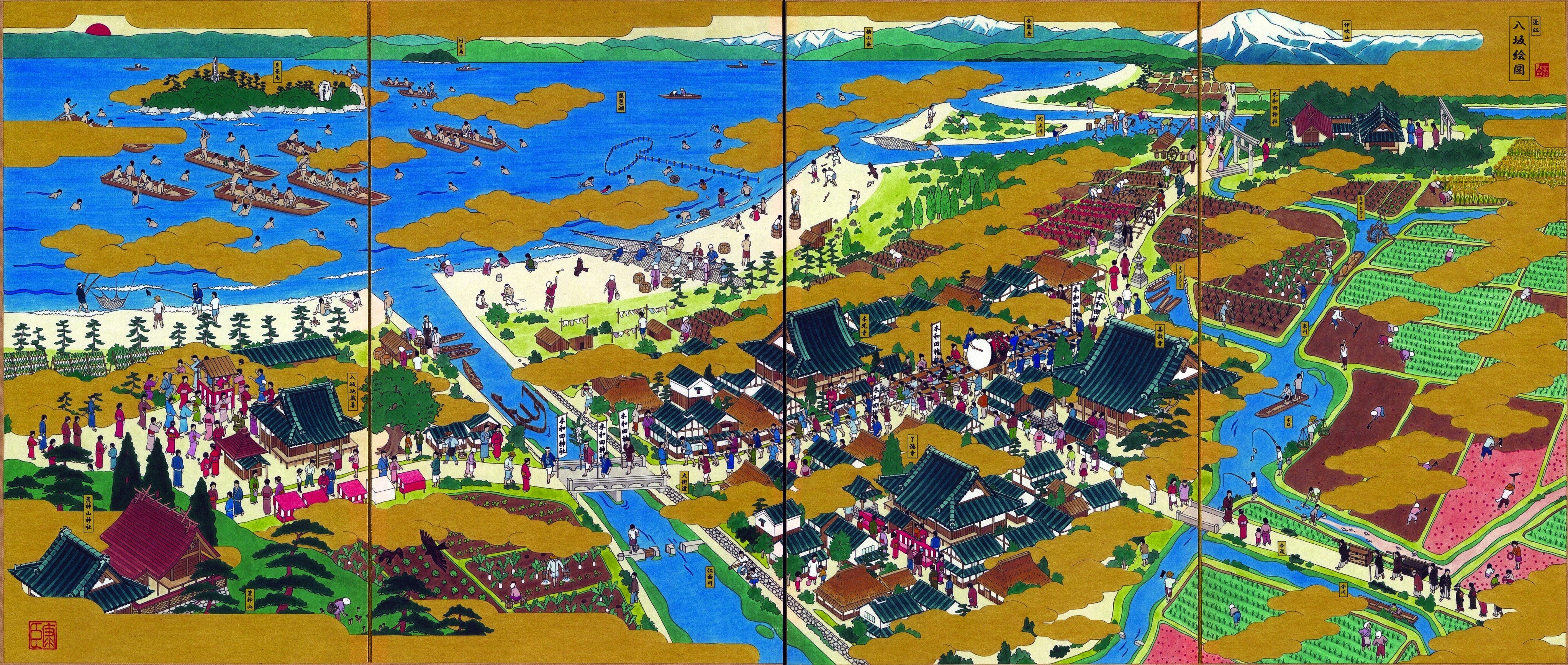「近江八坂図屏風」画:岡村康臣(上田洋平氏提供)