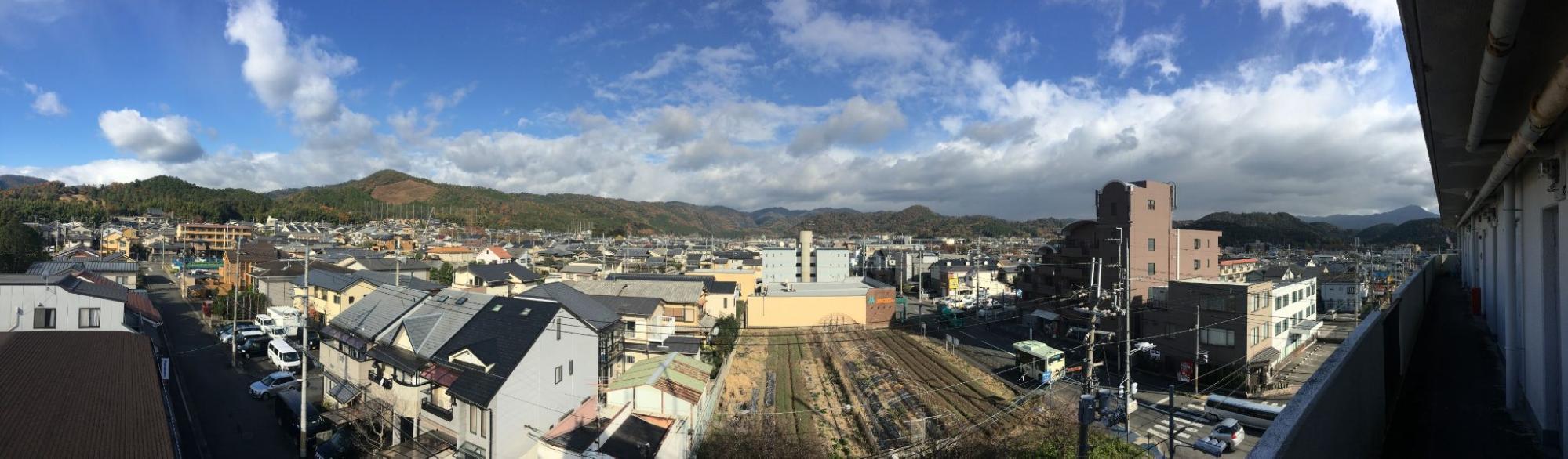 大宮学区の風景 後ろにそびえるのは五山の送り火で有名な「船形」