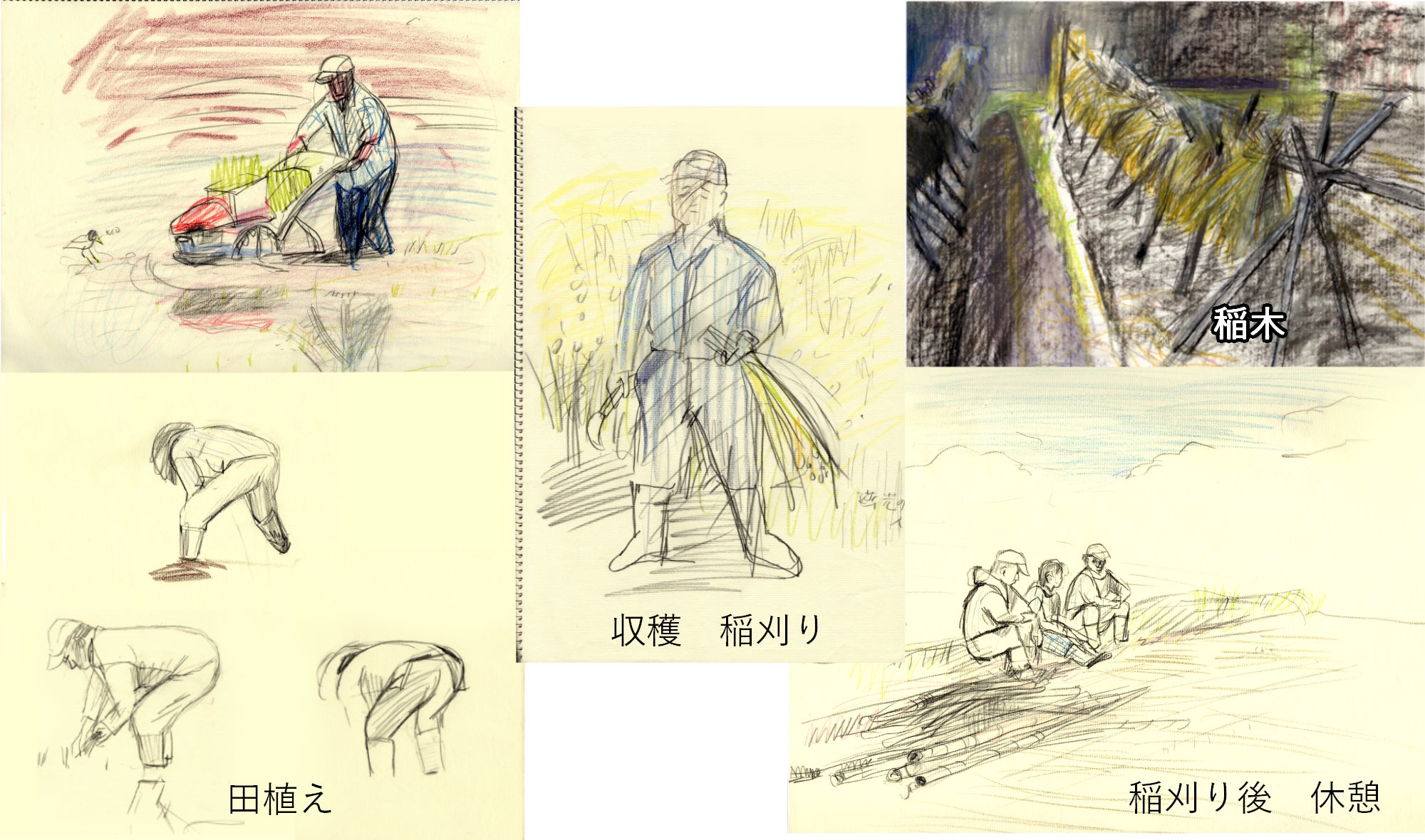田んぼや畑の作業や行事は季節によって変わります。
