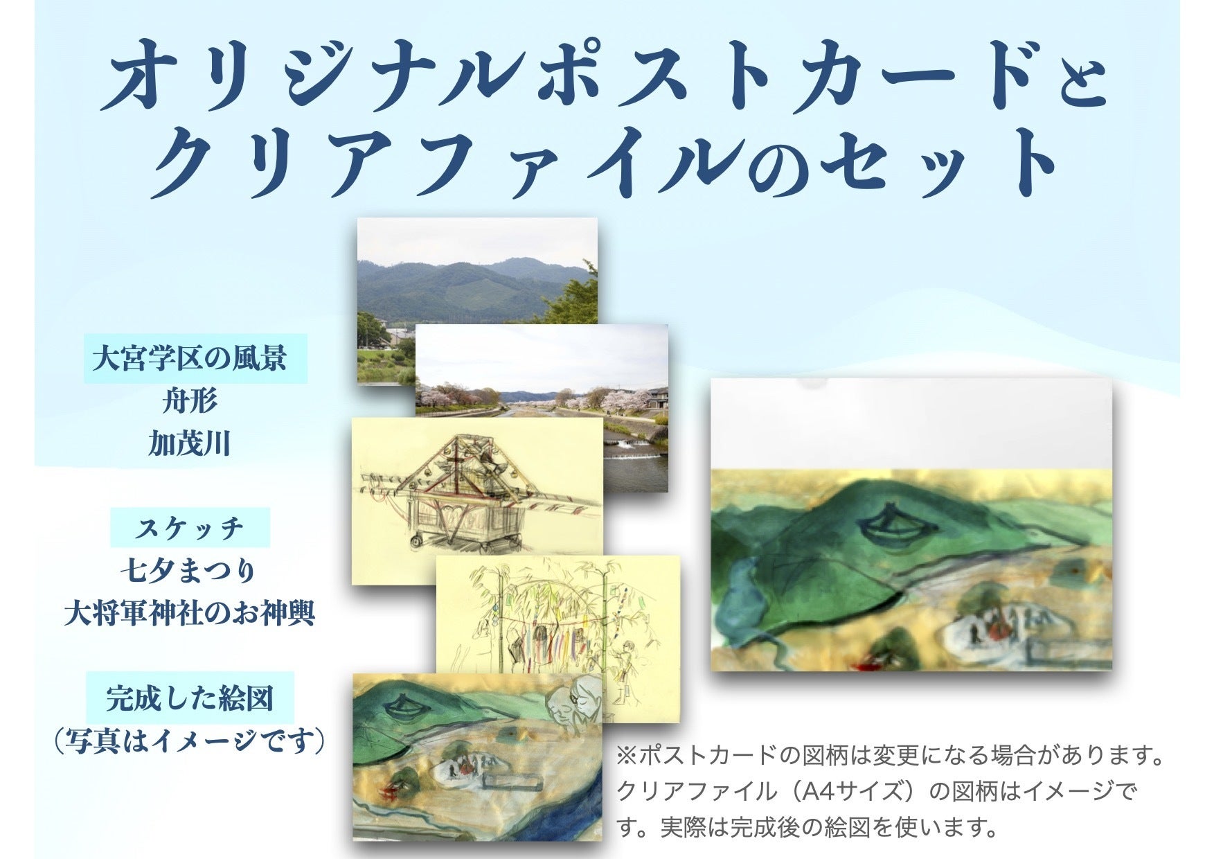 支援額10,000円 特製大宮学区のポストカード(5枚セット)とオリジナルクリアファイルのセット(限定35個)