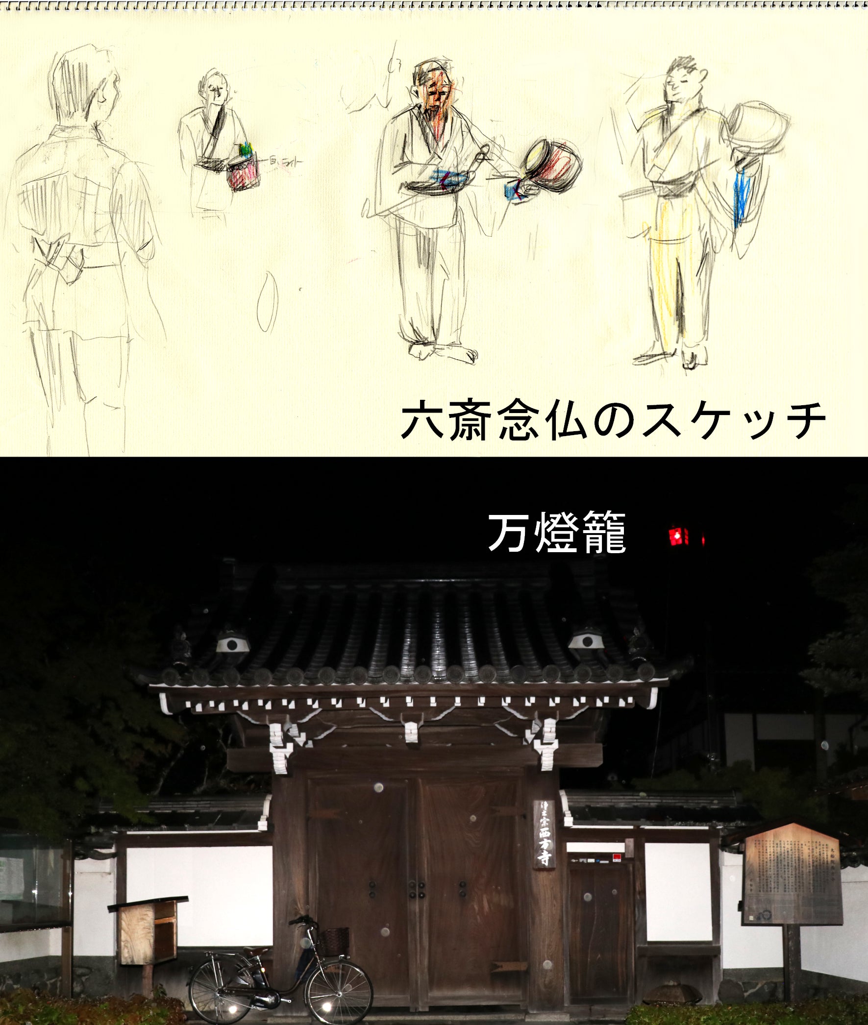 8月16日船形点火の後、西方寺で行われる『六斎念仏』の取材とスケッチに行ってきました。