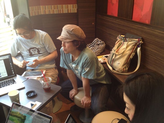 オフィスがないので、連絡手段は主にFacebookのグループやメッセンジャーを使っていますが、複雑なゲーム開発のロジックについては、やはりリアルなミーティングが欠かせません。今日も今後の開発にかんして重要なことを打ち合わせてきました。