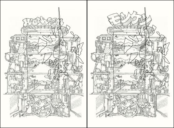今日アップした写真は、ブレストでの結果の一例です。ちょっとわかりにくいですが、モンケンのキービジュアルの線画データを開発メンバーに見てもらったところ、一番上のロゴ部分を、Tシャツデザインっぽい英語より、日本語のゴツいやつのほうがいいのでは、ということで描き直したものです。