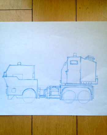 という証拠、というには心もとないのですが、重機の新バージョン、仮に「本当にあのとき使われてたヤツ」、ラフ途中ですが載せます。