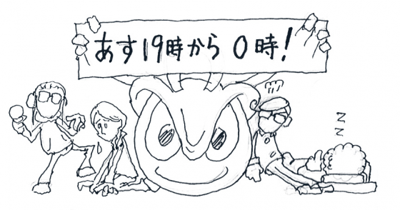 あと2日〜!!! 昨日より¥10,000からのリターンであるゲーム制作コミニュティ「モンケンクラブ」がはじまっております。 みんなでテスト版をプレイしながら、改良点や今後の展開についてアツイ議論が交わされています。これは楽しい! 楽し過ぎる!! 老いも若きも男も女も分け隔てなく「ひとつのゲームをおもしろくする」ことをテーマに会話するって新感覚だわー。「モンケンクラブ」募集も期限はあと2日です。これはオススメ。 さて、明日はいよいよラストデイなので、ニコ生することになりました。 インディーゲーム「モンケン」プロジェクト一夜限り復活生放送!今夜は帰さないスペシャル!! (番組ID:lv142076237) 残りが「0」(20日深夜0時)になるまでやります! 終電はなくなっちゃうので、僕はきっと家には帰れません。でもやる。無理する。 キャンプファイアーにプロジェクトをエントリーしてからの60日にわたる濃い日々……。あんなことやこんなこと色々ありました。それもすべて終わる。終わってしまう。その時、われわれの胸には万感の思いが去来するであろう。そんな最後の瞬間をみなさんと一緒に共有しつつの大総括会だよー! 「0」になった時、オーガナイザー黒川文雄の瞳から流れ落ちるであろうひとしずくの涙は清いものなのか? あるいは黒い河なのか。不動のセンターと言われた中村隆之は最後までその位置を確保出来るのか? 夜に滅法弱い納口龍司は起きていられるのか? そして飯田和敏は……。 (報告者:飯田和敏)