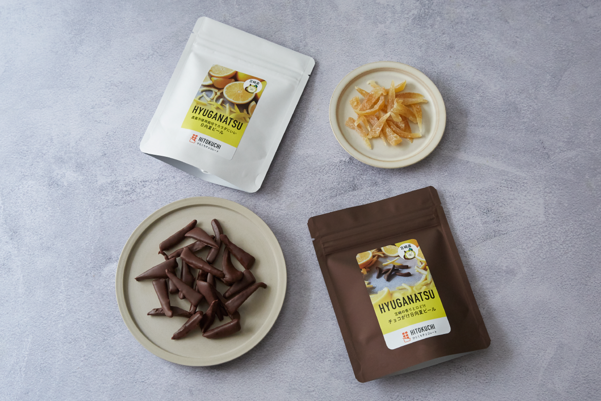 ひとくちチョコレートがお届けする「ひとくち日向夏ピールフルーツチョコレート」は、栽培期間中農薬不使用の日向夏を使用し、独自製法で日向夏本来の香り豊かな味わいがおたのしみいただけます!