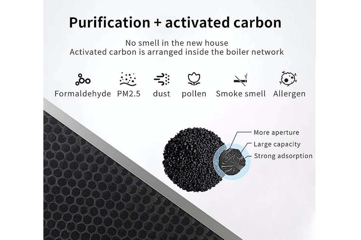 ○CARBONフィルター内部の活性炭で臭いや煙を吸着除去。ペット用トイレや体臭、タバコ臭などの生活臭も脱臭します。