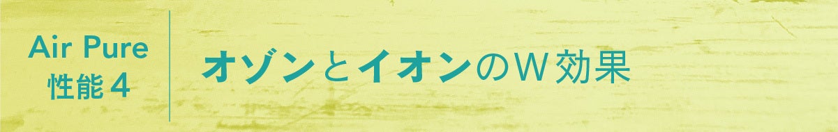 AirPureではこのオゾンの高い除菌力を利用し、室内に浮遊しているウイルスや菌だけでなく、家具などに付着した菌までも除菌します。さらに、部屋に漂う不快なニオイも消臭。フィルターだけでは取り切れない有害物質も、オゾンのパワーで消し去ります。