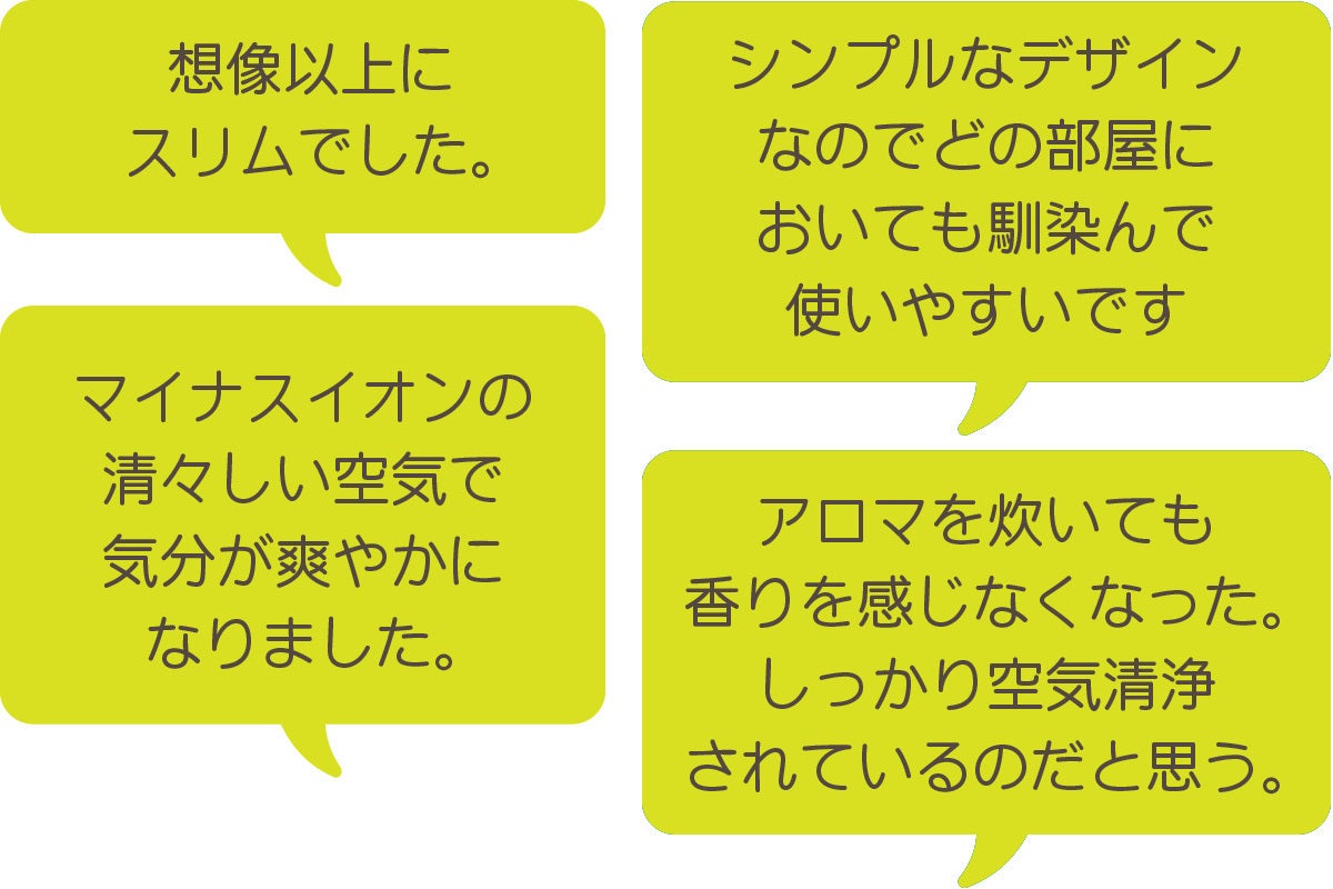 Air pureにはさまざまな空気中の物質を抑制・除去・脱臭する機能が搭載されています。
