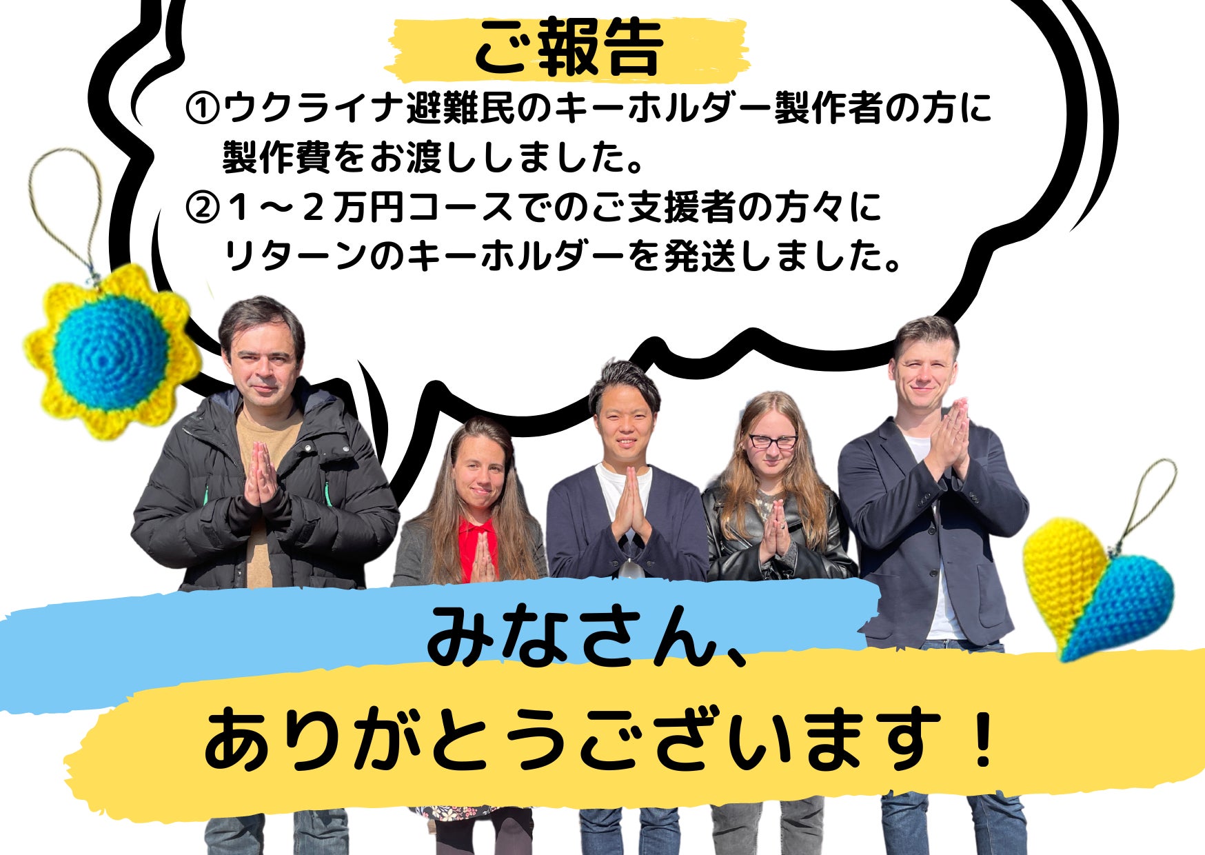 ご支援いただいた金額のうち、当初の通り、キーホルダー製作費用 ¥165,000 を製作者のウクライナ避難民の方にお渡しさせていただきました。
