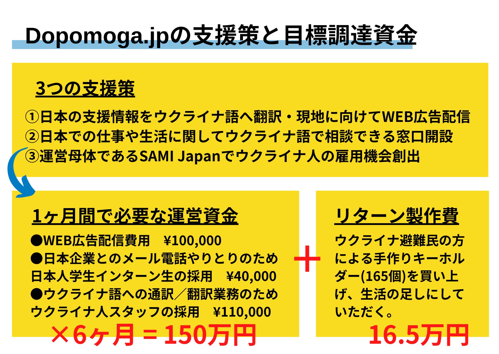 こ大きく2つの課題を解決するために、Dopomoga.jpでは次の3つの支援策を展開してまいります。
