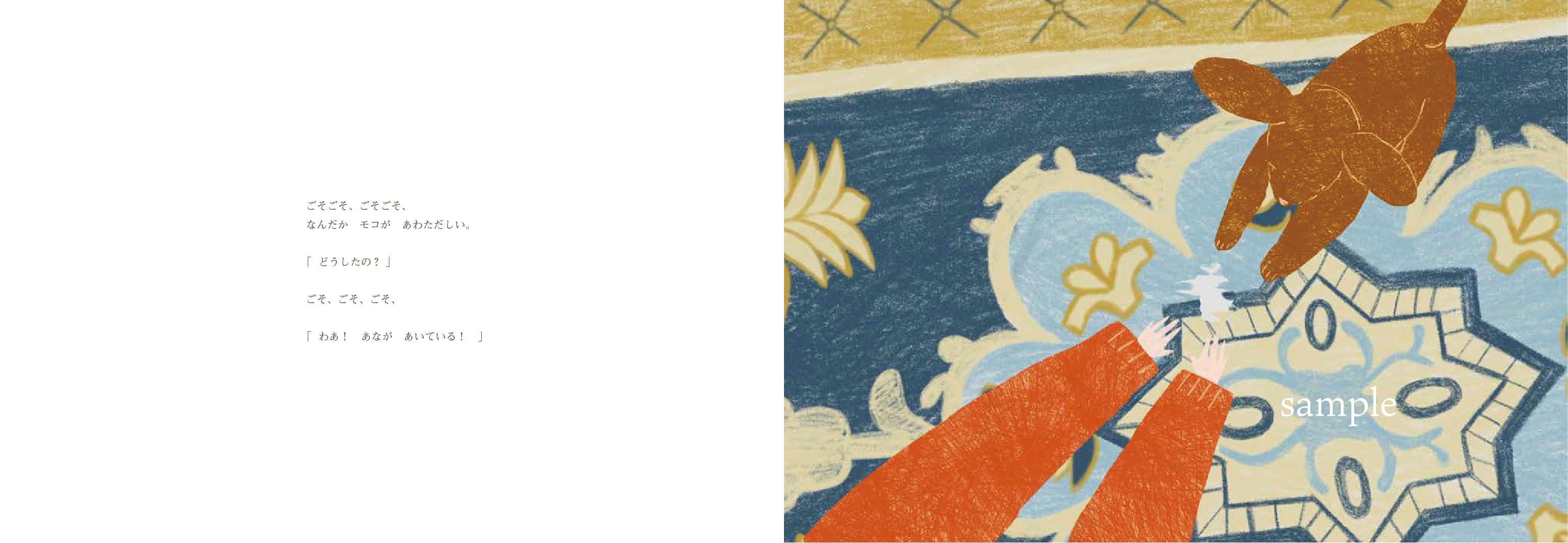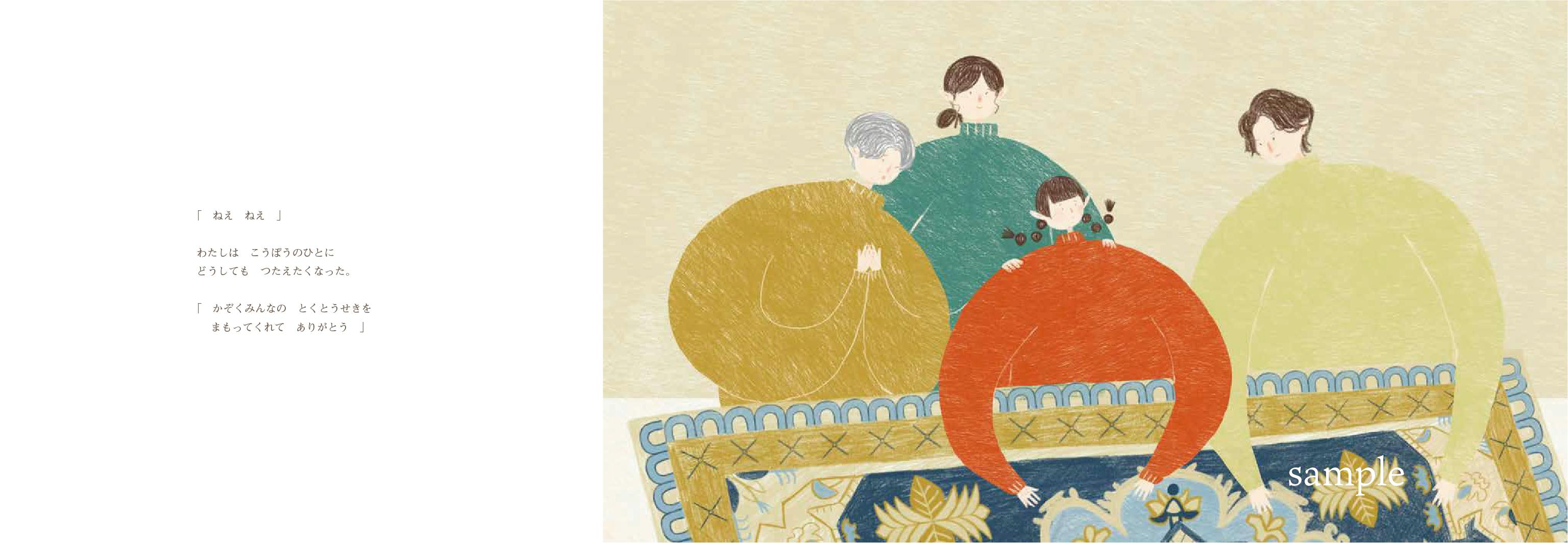 100年以上の歴史がありながらも戦後の機械化による大量生産の時代に入ると、繊細な手作業が主な赤穂緞通は一度は後継者不足で存続の危機にありました。しかし赤穂緞通への強い思いを持った織り手の方々によって今も伝統が継承されています。私は赤穂緞通に魅せられ、赤穂緞通の素晴らしさを実感しました。日本にはそんな素晴らしい伝統と技術がある赤穂緞通があるということを知ってもらいたいと思い、赤穂緞通をテーマにした絵本を制作しました。