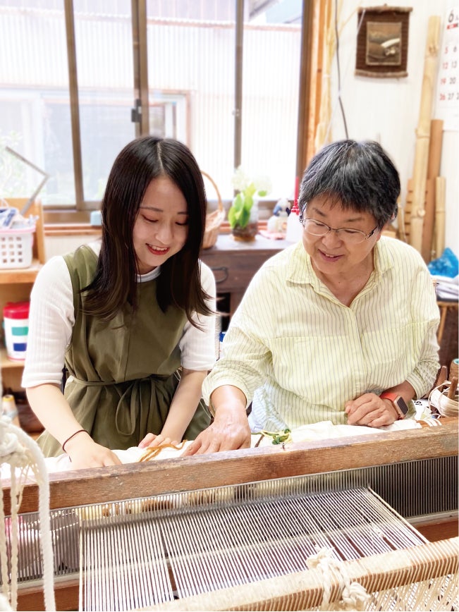 初めて見た赤穂緞通に「落ち着きの中に華やかさがあって、肌触りが良くて、ずっと触っていたくなる」とたちまち魅せられ、その場で弟子入りを志願しました。“弥生工房”の根来さんから「親御さんとよく話し合ってから決めてね」と諭されましたが決意は変わらず、親の承諾も得て今年4月に引っ越してきました。
