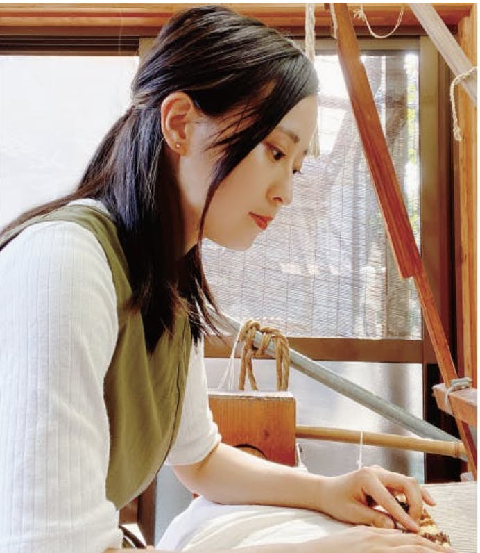 現在は弥生工房に週6日通い、一畳機で小物を織りながら赤穂緞通の製作技法を根来さんから教わっています。