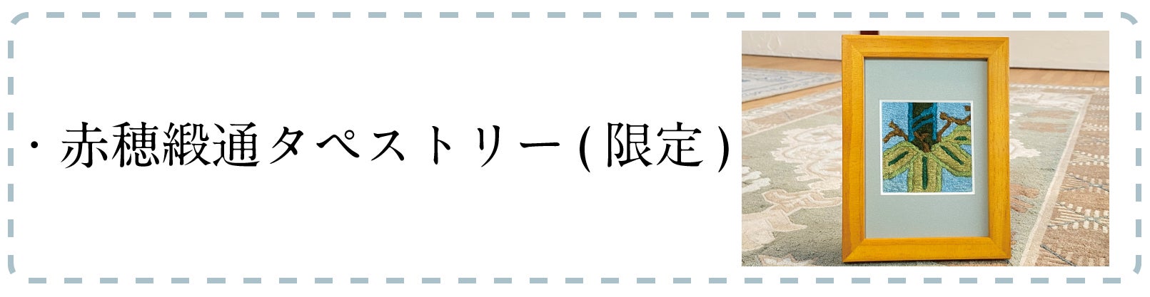 赤穂緞通は兵庫県赤穂市の伝統工芸品です。緞通とはすべて手織りで作られる絨毯のことで鍋島緞通(佐賀県)、堺緞通(大阪府)、赤穂緞通(兵庫県)あわせて日本の三緞通と呼ばれています。赤穂緞通は綿の糸を使用した柔らかい手触りが特徴で100年以上の歴史があります。
