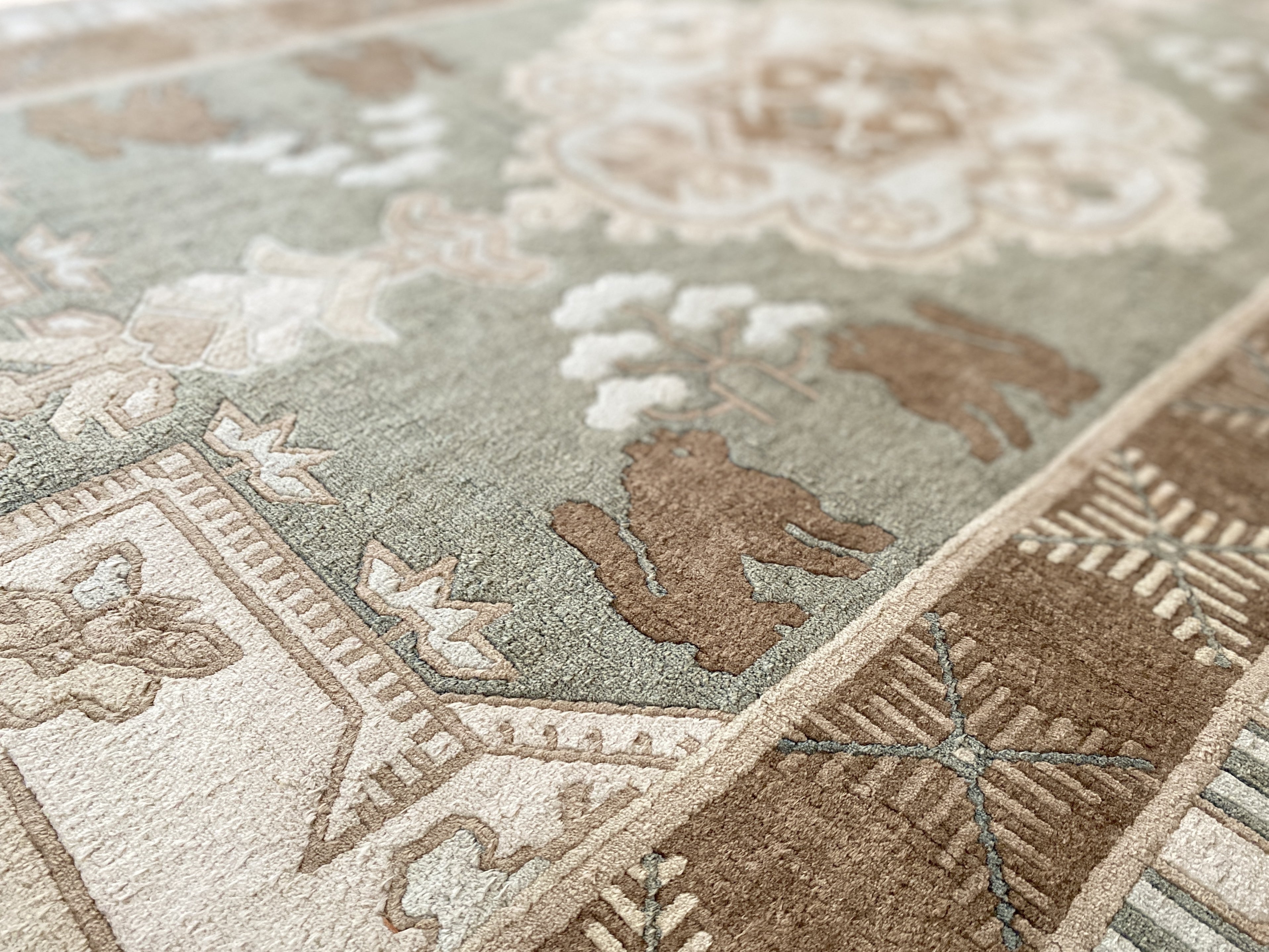赤穂緞通の最大の特徴である『摘(つ)み』という、文様の境に鋏を入れ、文様を際立たせる工程には織り手さんの繊細な手作業の技が光ります。