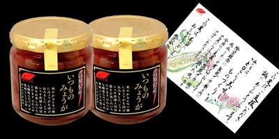 弊社が農産物として扱っている「みょうが」を加工品にいたしました。生のみょうがは3月~8月くらいまでしか収穫が出来ず、本年度も3月の後半から収穫が始まりました。その獲れたてのフレッシュなみょうがの茎を贅沢にたっぷり使用し、レモン酢に漬けこんだ「いつものみょうが」を再度生産いたしました。