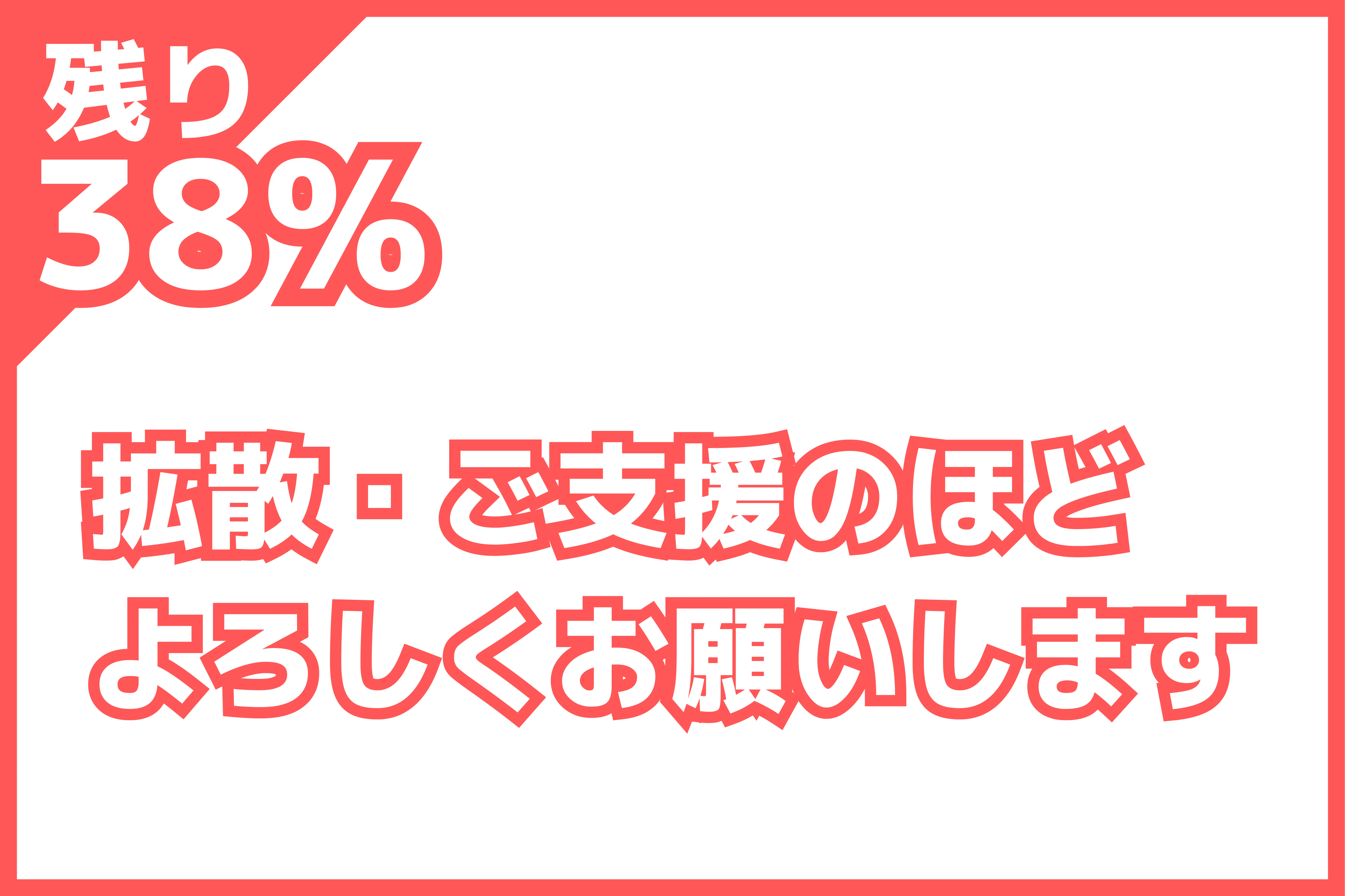 現在挑戦中のクラウドファンディングですが目標金額の60%を超え、残りが38%となりました。