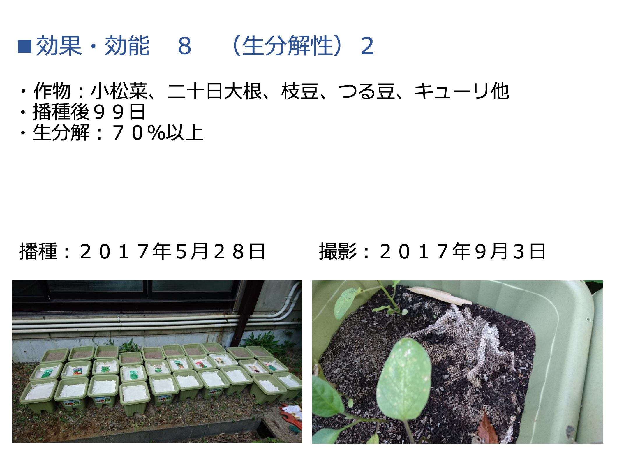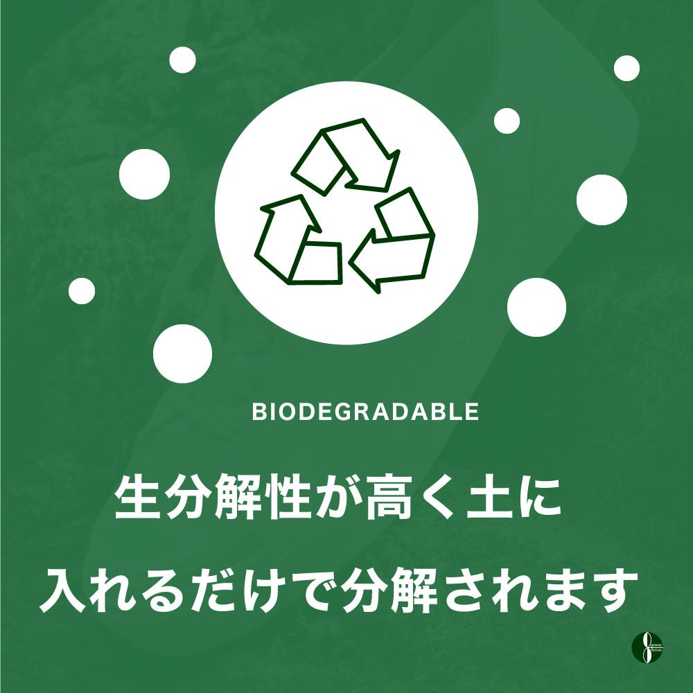 生分解性が高いだけでなく、土壌が向上し野菜などの成長を促し栄養価が増すため地球にとっても快適な素材と言えます。