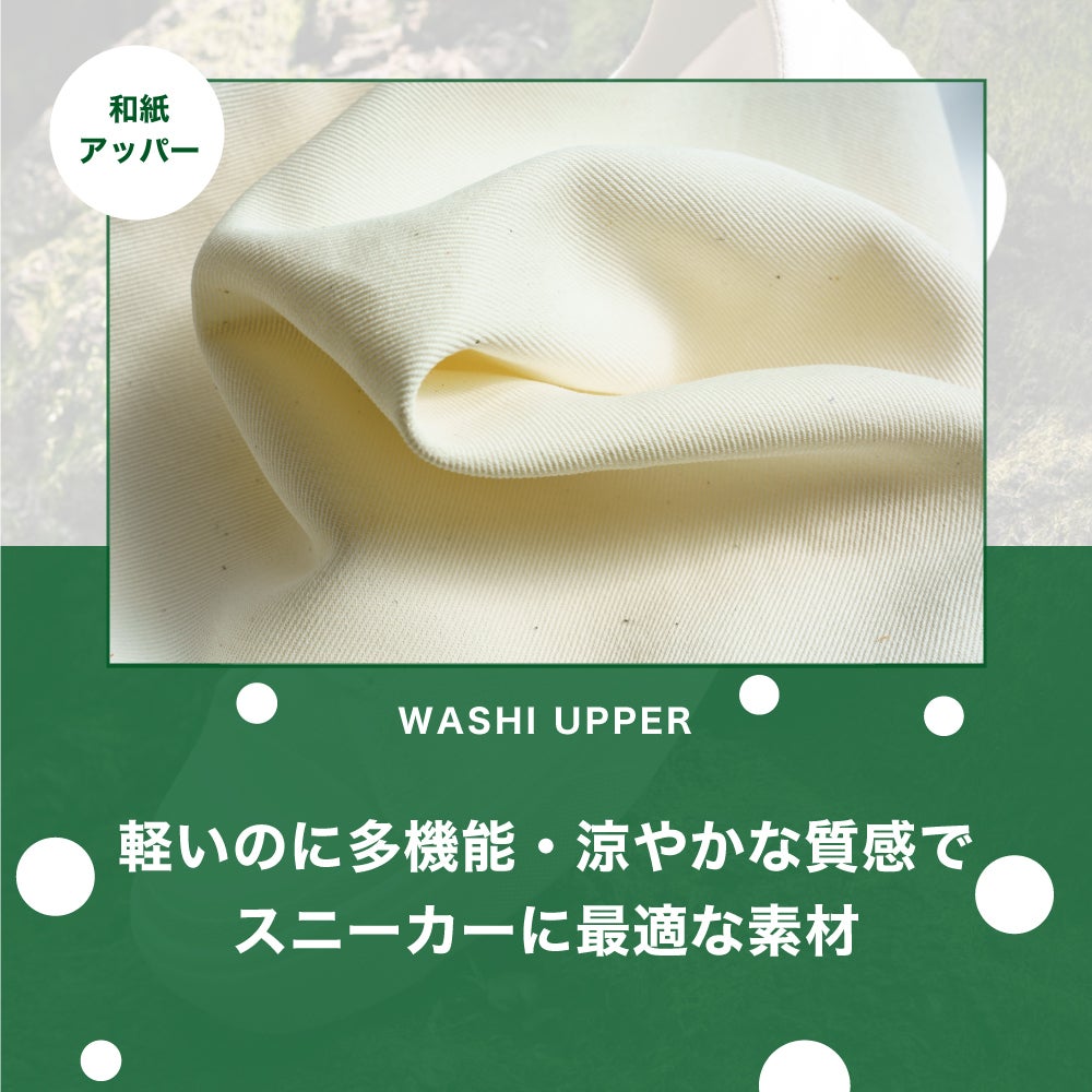 そんな「green green」初めてのプロダクトが和紙の持つ機能を生かして作られた天然素材のスニーカー「Classic」