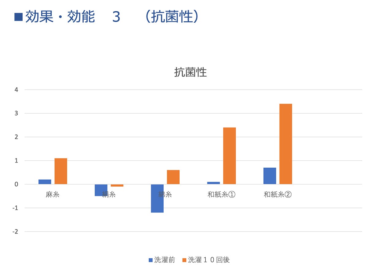生地に抗菌加工を施すと洗っていくうちに加工が落ちてしまうことがありますが、和紙の機能として消臭性があるだけでなく、洗っても消臭作用が減少することはありません。