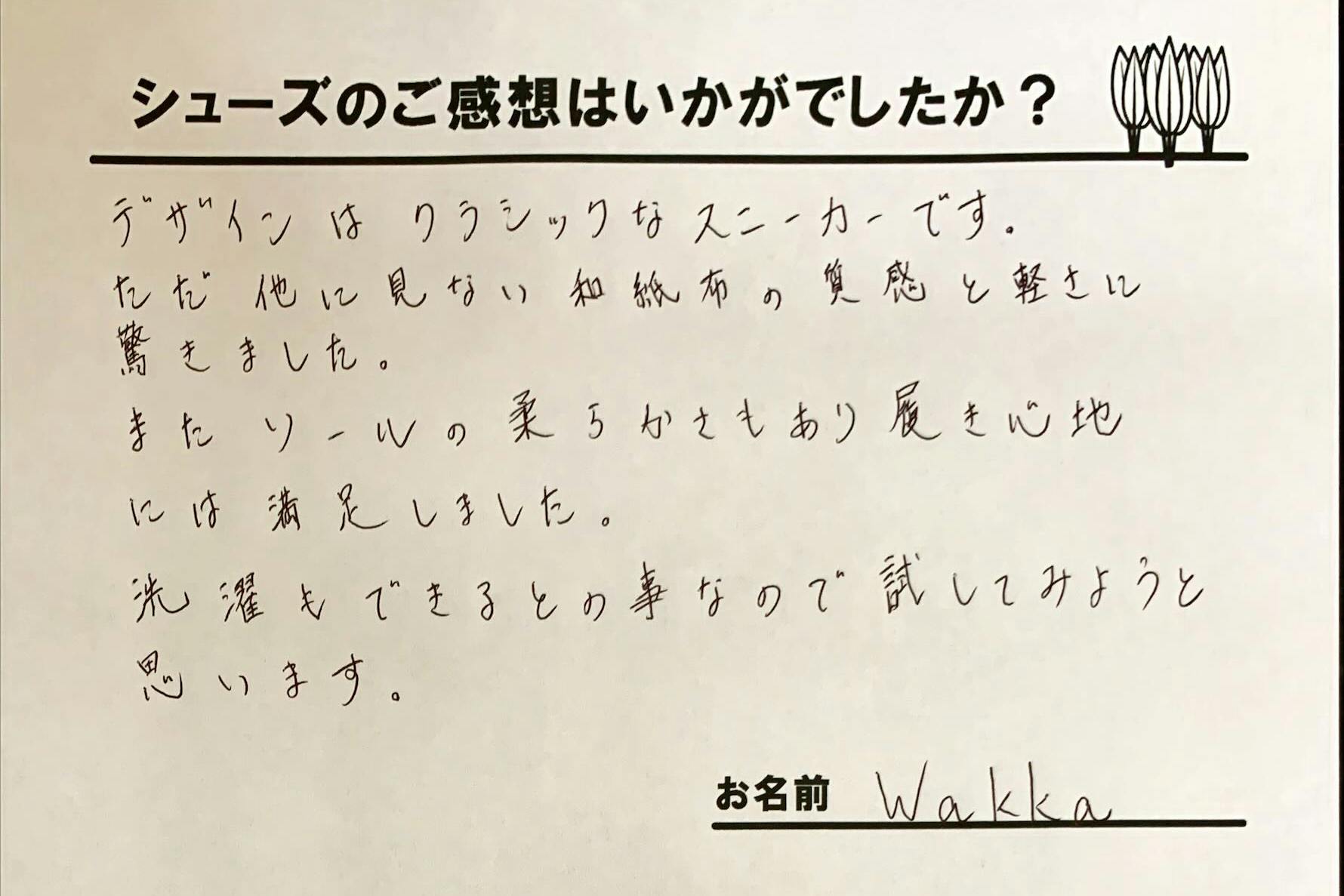 コメント:甲が高くてサイズ選びには困ることが多いですが、サイズチャート通りで圧迫感などもなく履きやすいです。和紙という素材が柔らかい生地だからかもしれませんね。
