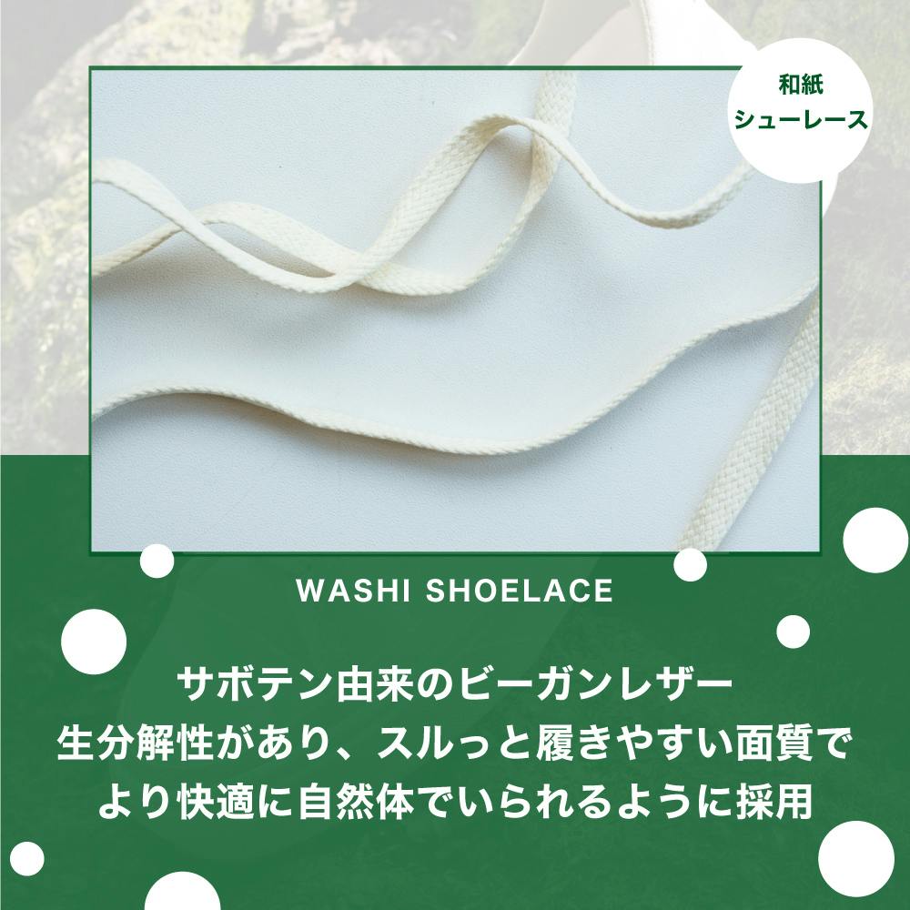 アッパーは和紙本来の生分解性をできる限り活かせるように、金具などは一才使用しておりません。