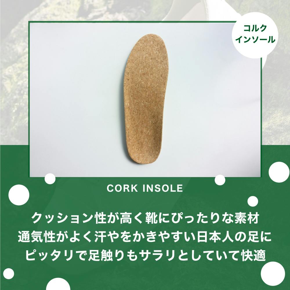 green greenのシューズにはコルクインソールを採用しております。