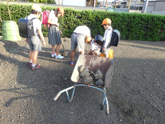 子供達は遊びたいのをガマンして、毎朝しばらく石拾い(掘り起し^^!)をしてくれました。