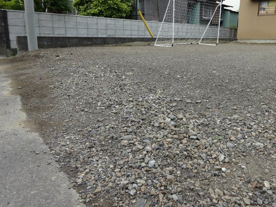 ほぼ砕石ですが、車が通ると跳ねて危ない場合もあります。