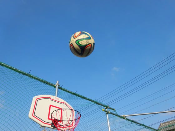 そのバスケの横ではいつもの様にサッカーボールを蹴っ飛ばしてます^^