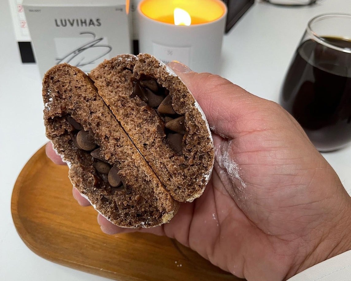 表面はチョコレートコーティングでパリッとしていますが、一口かじると中からやわらかくてシンプルなミルク味のクッキードゥがお目見えします。
