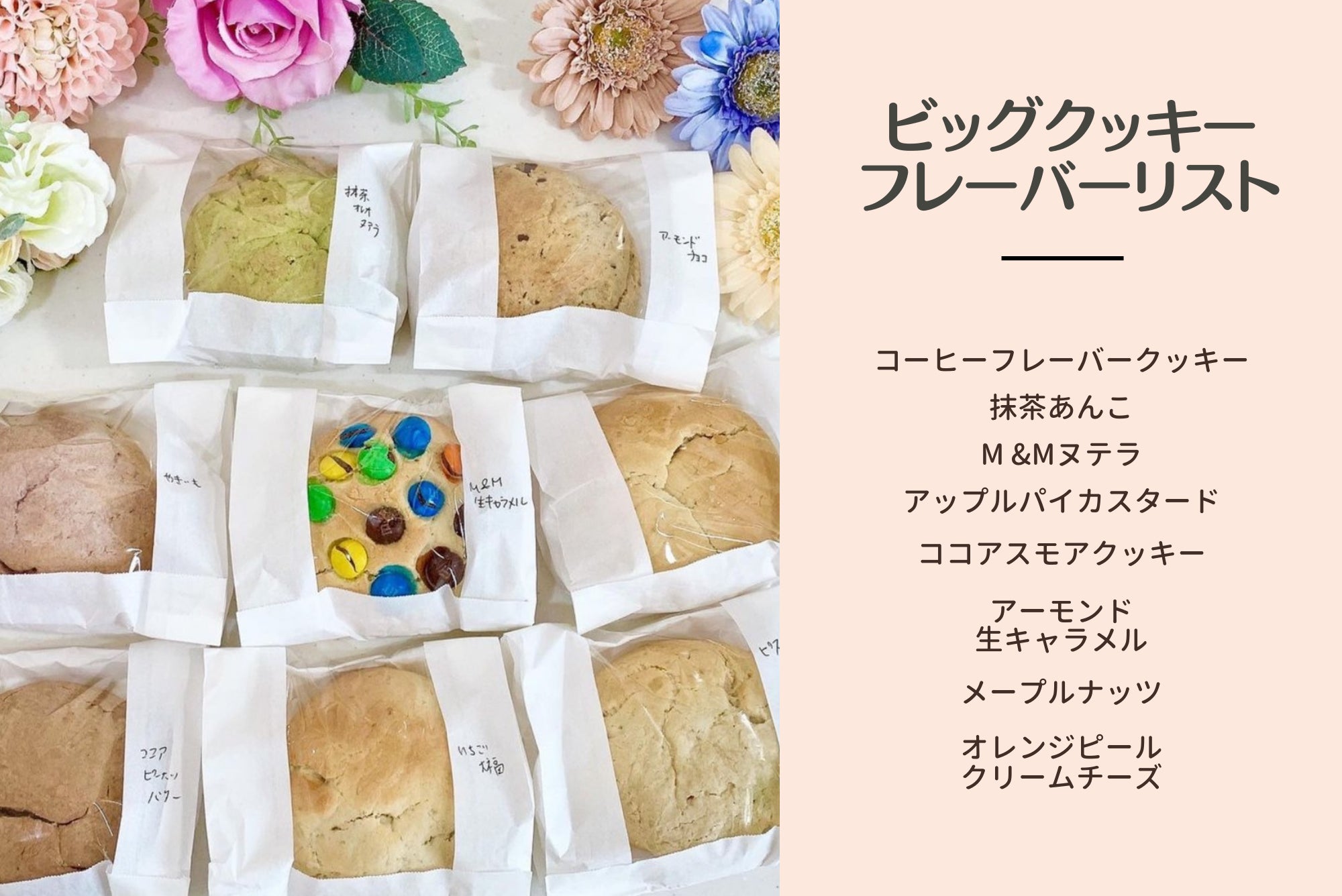 大きさはビッグですが、味はやさしく繊細。そこが、オリジナルレシピで一つひとつ丁寧に焼き上げる、当店のクッキーの魅力です。