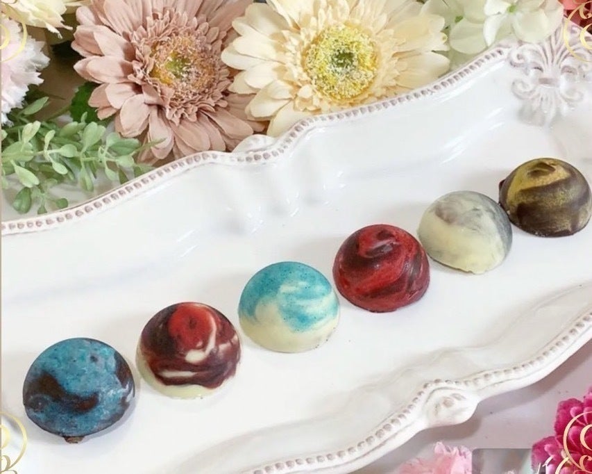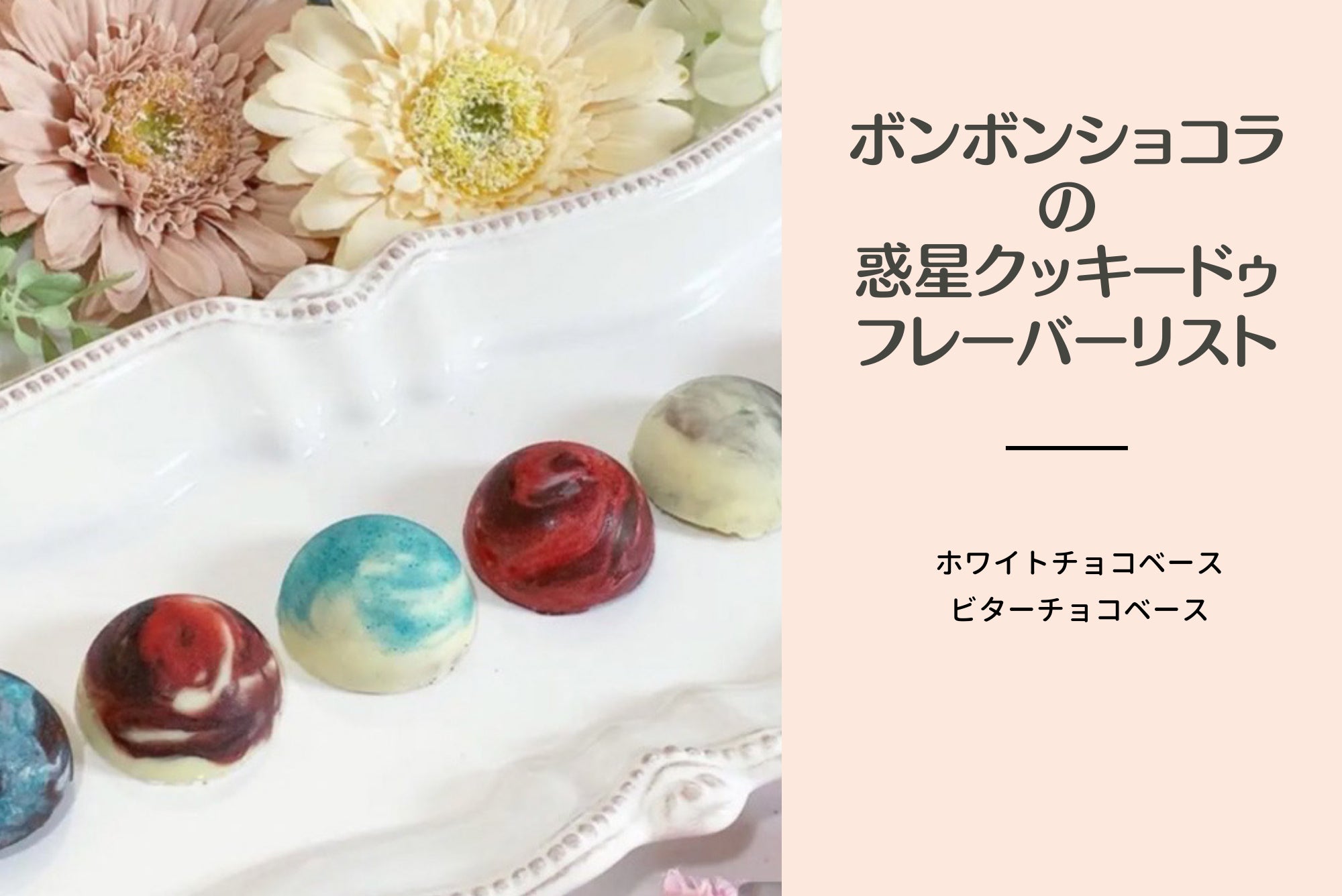 こちらは出来立てホヤホヤの新商品! 宝石のような輝きを放つボンボンショコラに、クッキードゥを閉じ込めました。