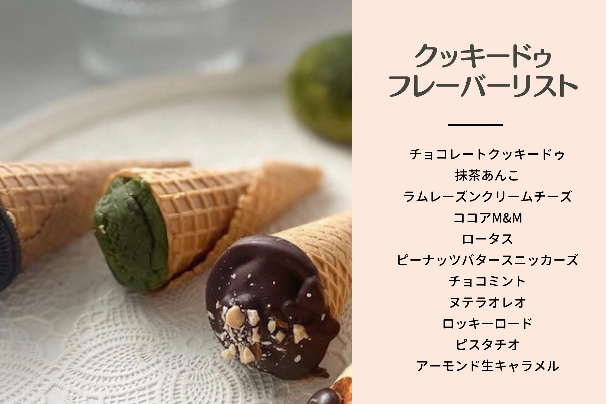 しっとり、なめらかなクッキードゥと、サクサクのシュガーコーンが絶妙なハーモニーを奏でます! フレーバーは10種類以上!