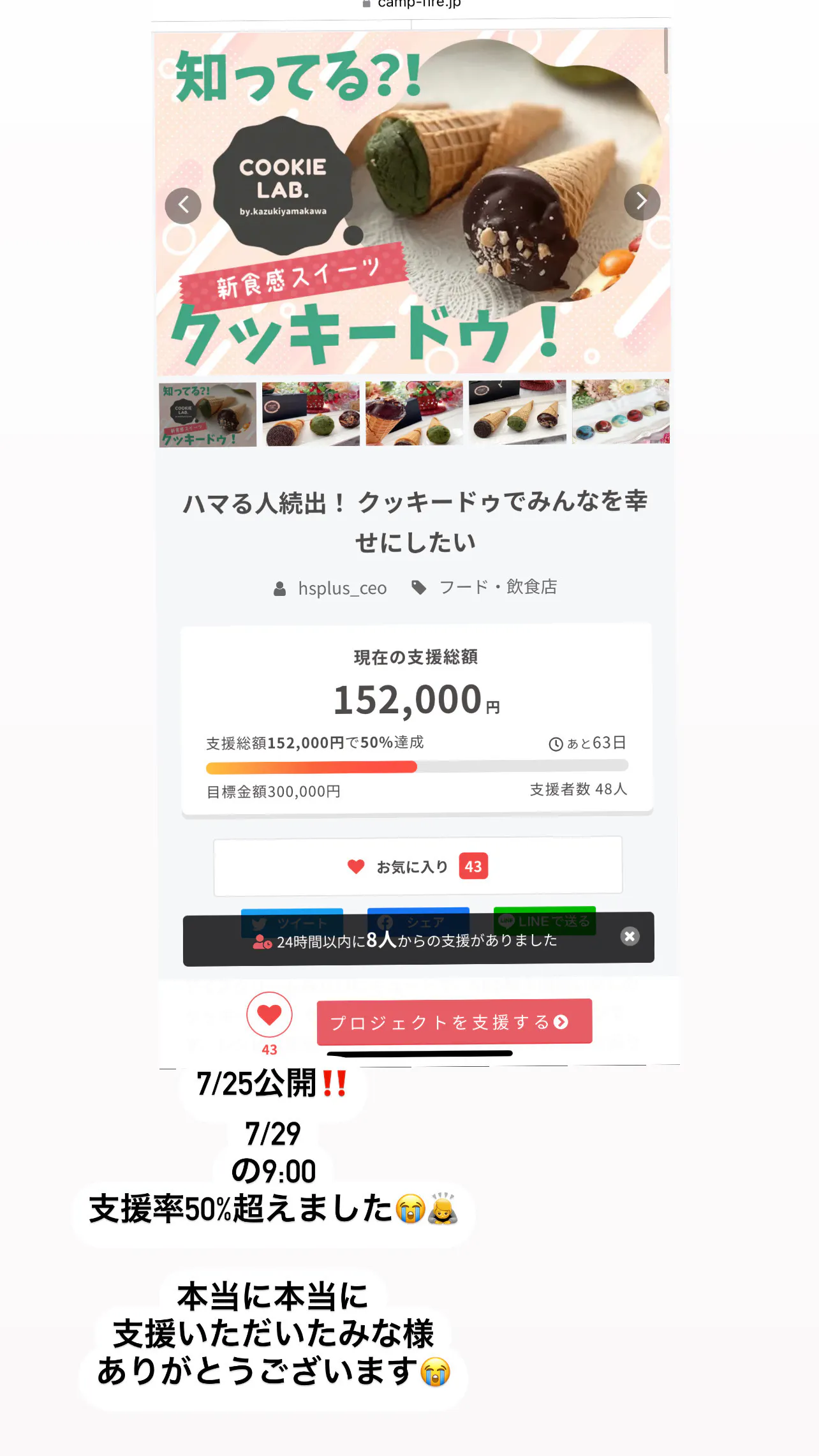 公開5日目にしてご支援率が50%達成‼!
