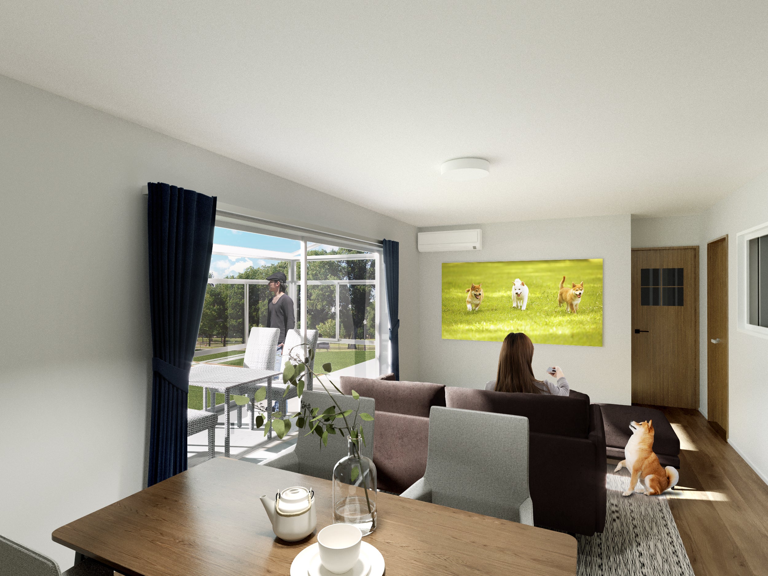 リビングとドッグランの間にインナーバルコニーがあります。全面ガラス張りで締め切ることも可能なので、冬の寒い時はインナーバルコニーを活用することで、快適にアウトドアを楽しめます。
