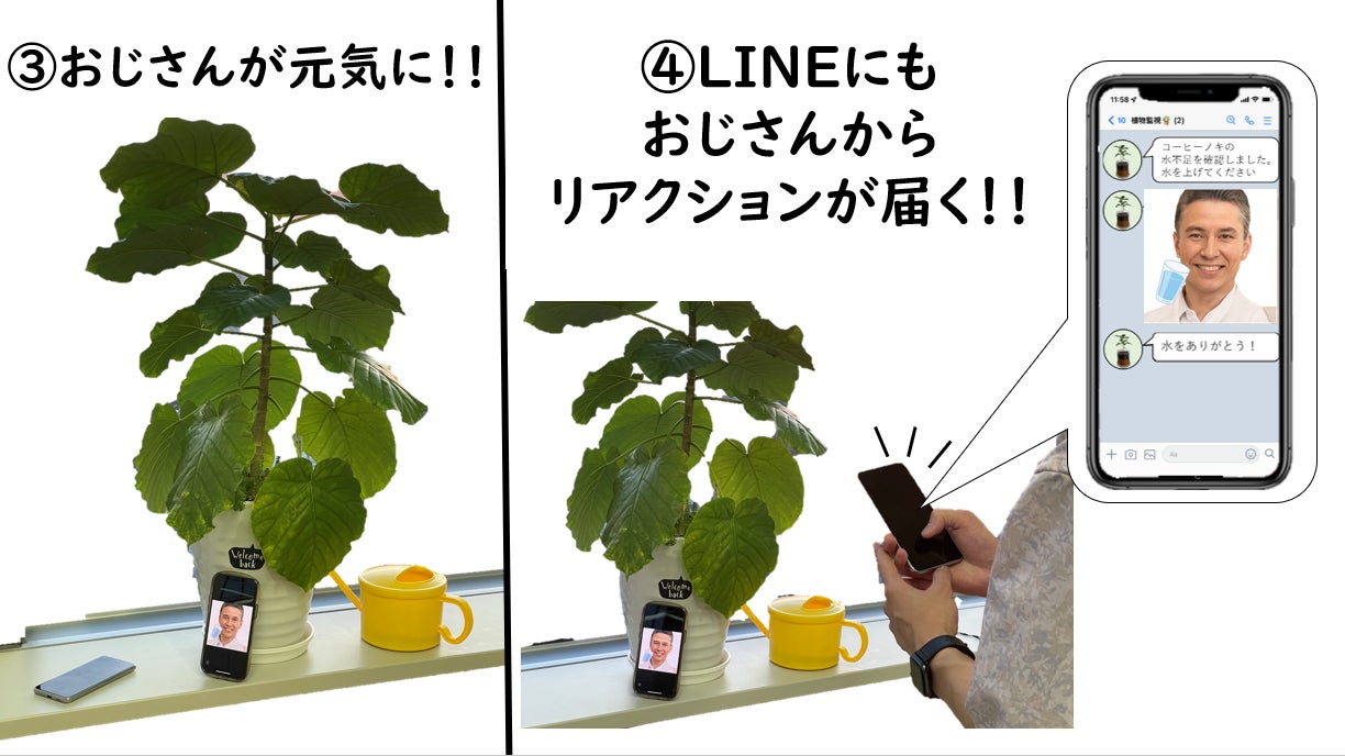 なぜ、擬人化にしたかというと植物からの反応が視覚的にわかるようになるし、いろんなリアクションが貰えたら楽しいかなと考えたためです。また、おじさん限定にしたのは老若男女のなかで出てきたら一番インパクトがあると思ったためです笑。