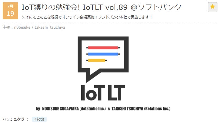 明日、7/19(火)19:20~開催のIoTLTに登壇します!