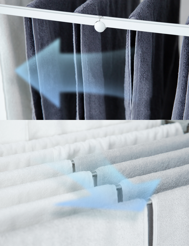 このように幅を広げたことにより、洗濯物の密着を少しでも無くし余裕をもち干すことが可能!