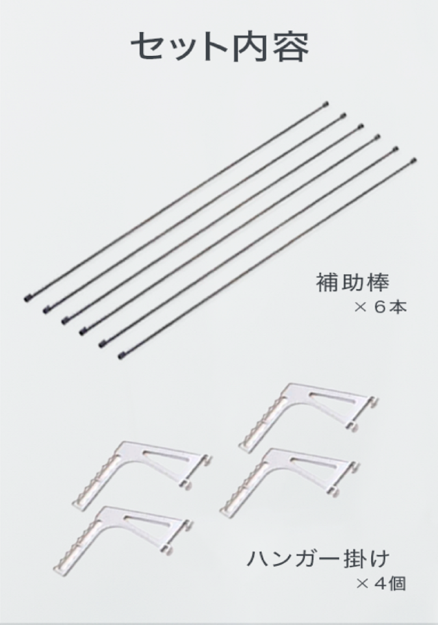 内容:洗濯台1個 ・ハンガー掛けセット(補助棒6本・ハンガー掛け4個)