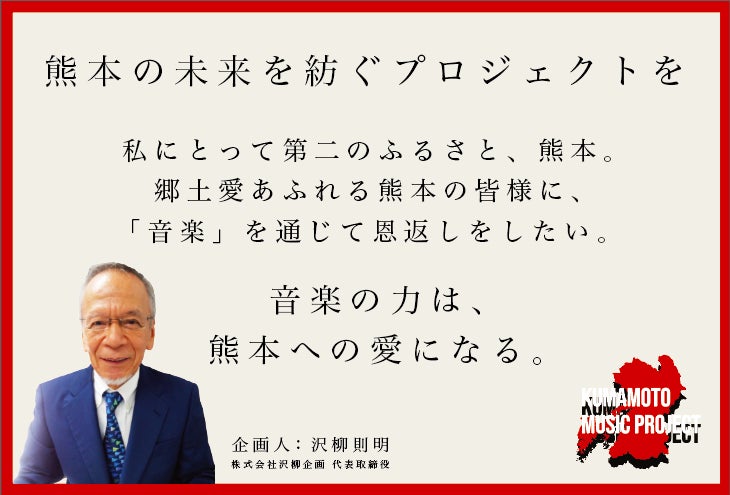 を一般公募し、様々な世代や音楽ジャンルで「熊本愛」を表現したいと思っています。