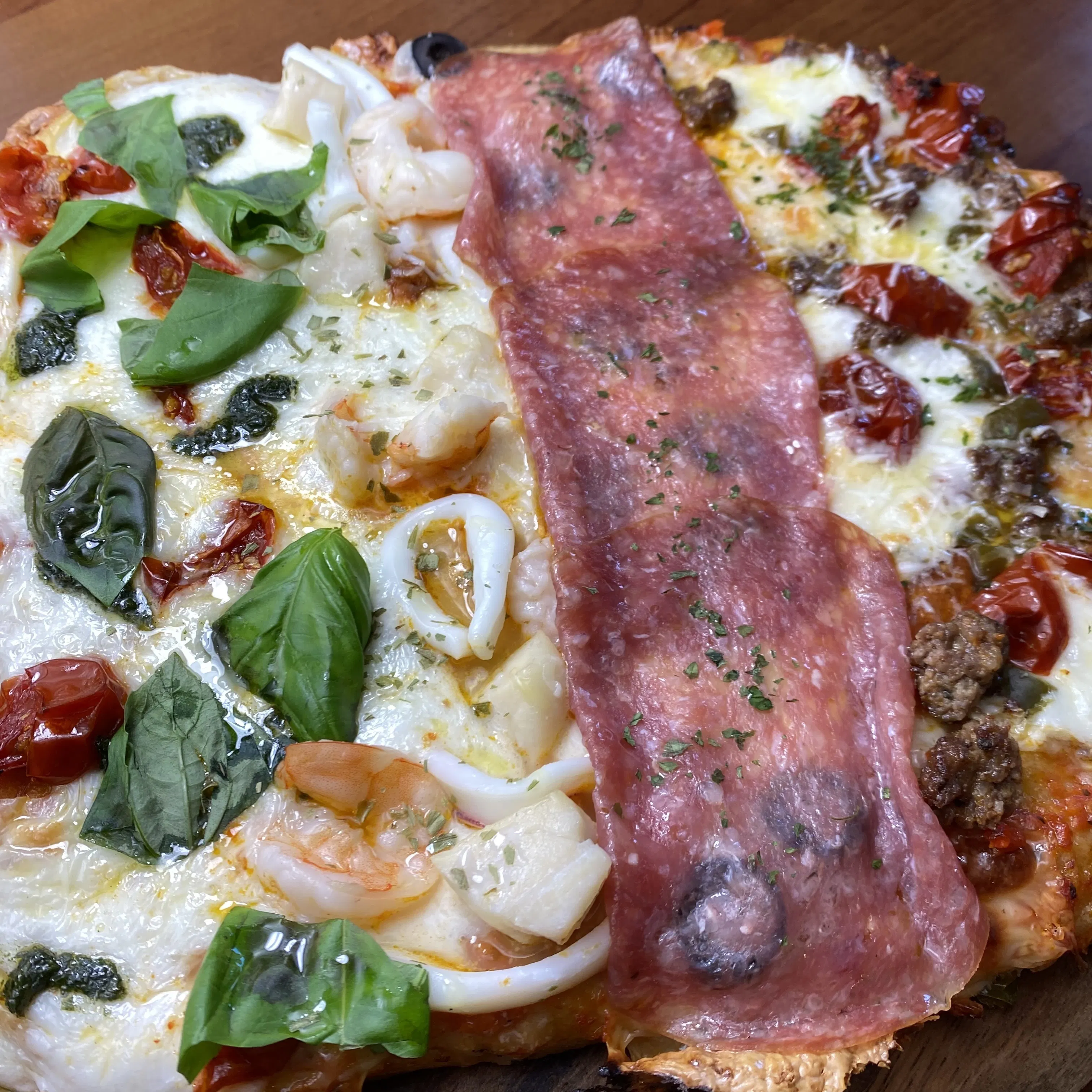 また、焼き方も、どのタイミングで具材を乗せるかで、焼き上がりの見た目や味に影響します。写真のピッツァは、早めにチーズを縁まで広げて、焦がしてみました。皆様の期待以上のものがお送りできるよう精進します!